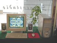 Flat-CRT-Monitor mit integriertem Touchscreen.